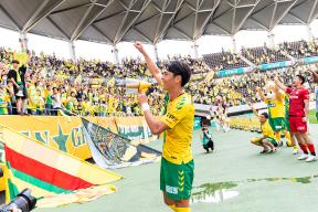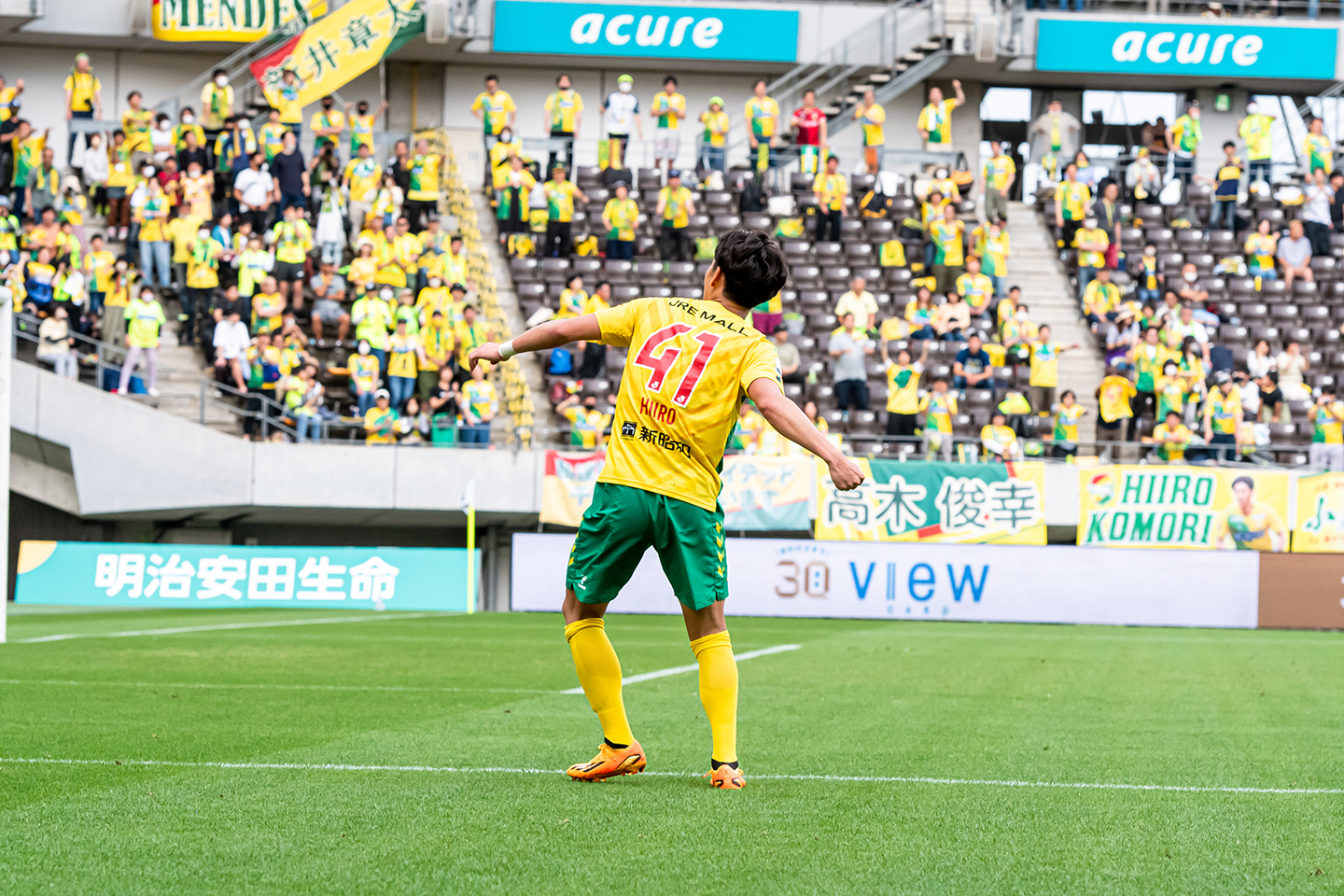サポーターの皆さんの近くで“ジェフ三唱”をやりたいとずっと思っていたので、やっとできて良かったです。フクアリで、自分が出ている試合で勝ちたいとずっと思っていましたし、離脱している間はスタンドから見ていて「うらやましいな」と思っていました。やっと自分がピッチに立って勝つことができたので、本当に最高でした。