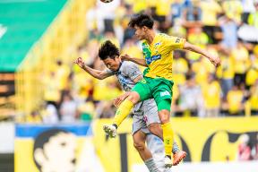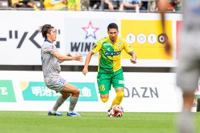 17分には右サイドでパスを受けた風間がやはり対角のロングパスで最終ラインの背後を狙う。飛び込んだ小森が見事な胸トラップからシュートを狙ったが、これはわずかにゴール右に外れた。小森は20分にも決定機。再び相手DFの背後でラストパスを引き出し、ゴール右にわずかに外れるシュートを放つと、ジェフは21分にも相手クリアボールを拾って素早く縦パスを通し、椿のクロスにブワニカと小森が飛び込むチャンスを作った。