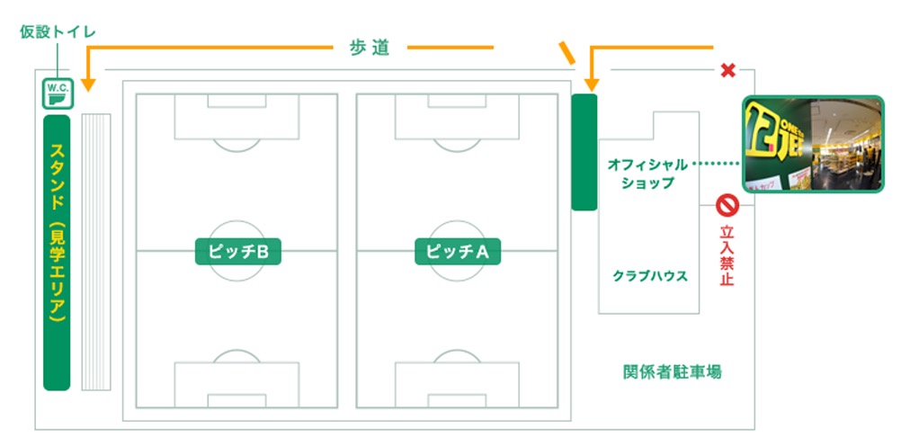 ユナイテッドパーク内天然芝ピッチ□見学場所