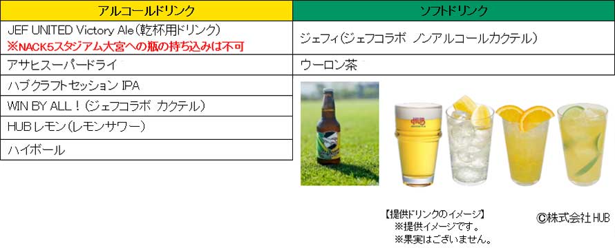 乾杯用ドリンクとしてクラフトビール「JEF UNITED Victory Ale」(1本330ml)をご用意する他、「HUB JEF UNITED PUBペリエ千葉エキナカ店」で限定販売されているオリジナルカクテル「WIN BY ALL」等、計7種類のアルコールドリンク、ソフトドリンクが飲み放題です。また、乗車のお客さま全員にHUBお会計10%OFFクーポンをお渡しします。.jpg)