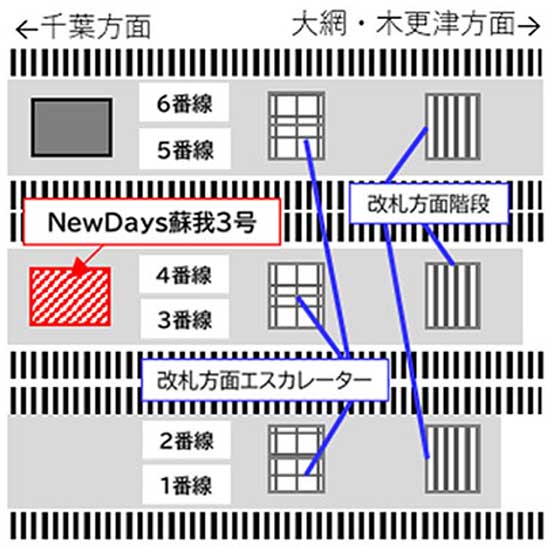 JR東日本 蘇我駅 京葉線ホーム(3・4番線ホーム) 7:00~19:00セルフレジ専用キャッシュレス・無人店舗