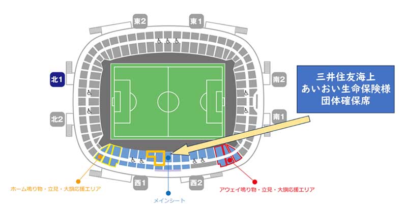 あわせて、団体応援するため、メインシート(自由席)の一部席を事前に確保いたしますのでお知らせいたします。