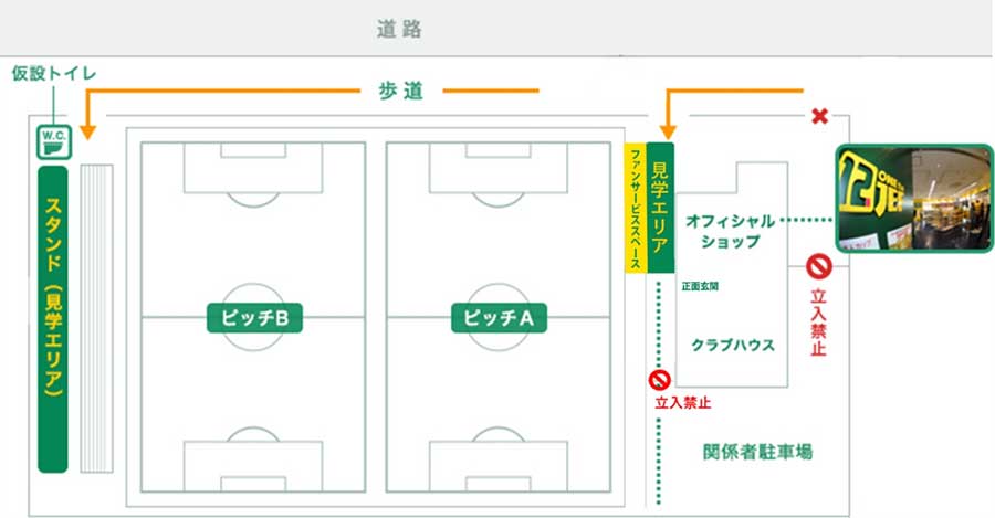 - 公開練習日における見学エリアの様子をクラブのSNSやオウンドメディアで使用させていただく場合がございますので予めご了承ください。