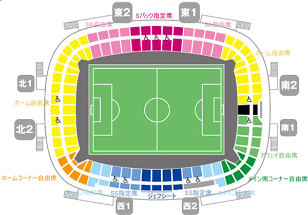 - ジェフシート、SS指定席北側、SS指定席南側、Sメイン指定席北側、Sメイン指定席南側、Sバック指定席、アウェイ自由席は当日券販売所での販売は行いません。