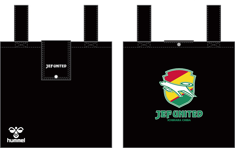 - hummelロゴとジェフユナイテッドのエンブレムがデザインされた黒いエコバック!