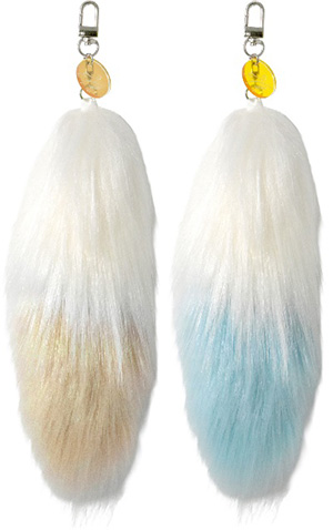 ふわふわのしっぽとロゴ入りアクリルチャームの組み合わせがレトロかわいいラッキーチャームです。