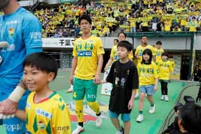 選手入場前にフェアプレイフラッグを持ってピッチにご入場いただきます。