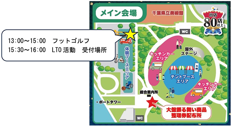 - ジェフユナイテッド市原・千葉は13:00~15:00の間、千葉湊大漁まつりの体験ブースで「フットゴルフ」を行います。