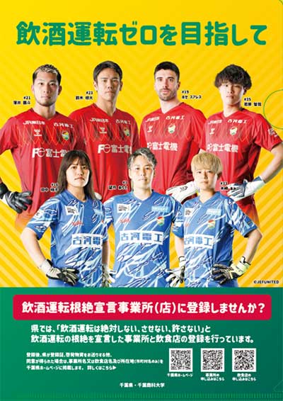 ジェフユナイテッド市原・千葉では、社会連携活動の一環として、11月9日(日)に開催する2025明治安田J2リーグ第36節 藤枝MYFC戦で、「飲酒運転根絶啓発キャンペーン活動」を実施いたします。