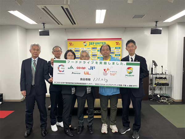 ジェフユナイテッド市原・千葉では、11月9日(日)に開催いたしました2025明治安田J2リーグ 第36節 藤枝MYFC戦におきまして、クラブ理念のひとつである「地域・社会の課題解決」に向けフードバンクちばさまと共同で「フードドライブ」を実施いたしました。皆さまからご寄付いただいた食品は、「フードバンクちば」を通じ生活に困窮している方や支援団体に届けられます。