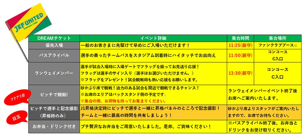 - 『DREAMチケットproduced by JEFUNITED』を購入されたお客さまは、注意事項に同意したものとみなします。