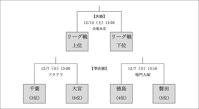- 準決勝、決勝ともにリーグ戦上位クラブのホームで行う