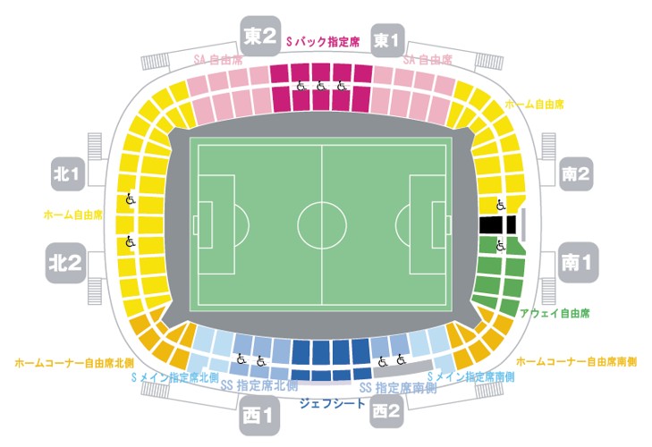 ※メインスタンドの記者席横の座席についてはアウェイクラブ関係者席として運用いたします。