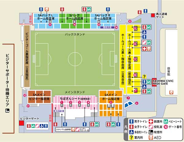 - 柏レイソルを応援される方はKASHIWA CIVIC PRIDE GATEより、ジェフ千葉を応援される方はビジターゲートよりご入場ください。