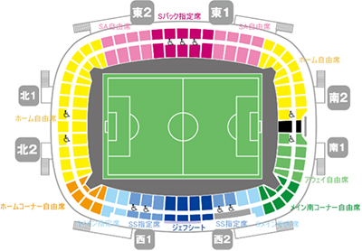 - メイン南コーナー自由席は対戦相手によって、アウェイコーナー自由席となる場合がございます。