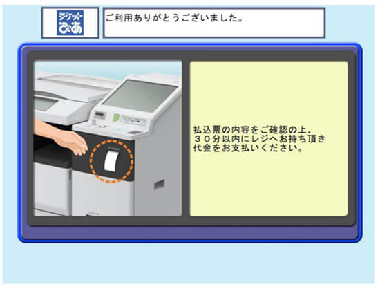 STEP10. マルチコピー機より払込票が出力されましたら、お受け取りになり、30分以内にレジへお持ちください。