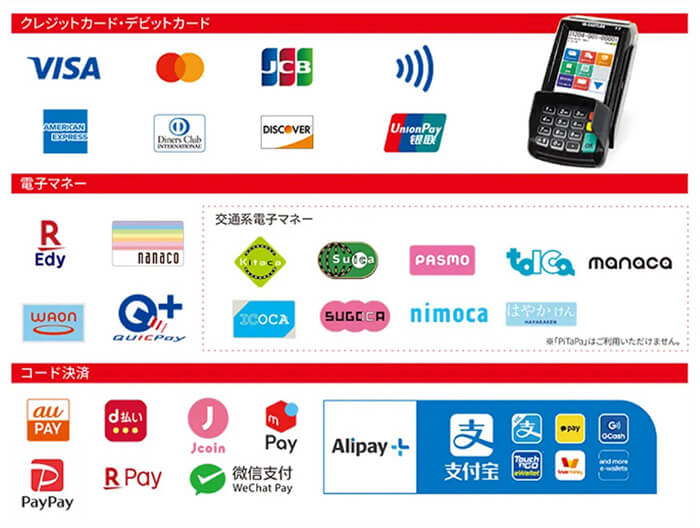 クレジットカード・電子マネー・QRコード決済などでの決済が可能となります。