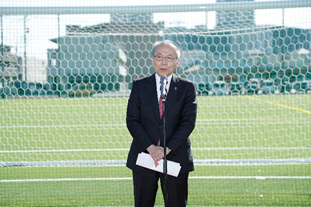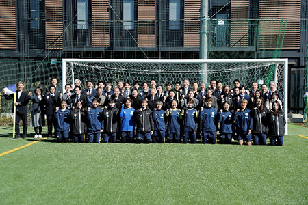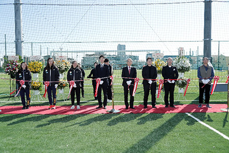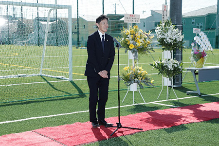 新拠点がある船橋市の市長 松戸徹市長をはじめ、WEリーグ理事 海堀あゆみ様、地権者様やパートナー企業様など関係する多くの皆さまにご出席いただき、竣工式を執り行うことができました。