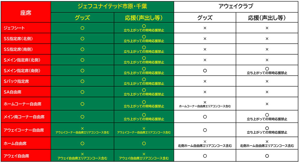 - 浦和戦についてはメイン南コーナー自由席の設定はございません。