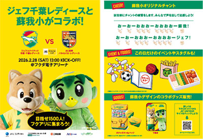 ジェフユナイテッド市原・千葉では、2月28日(土)開催の2025/26 WEリーグ クラシエカップ グループB 第3節 AC長野パルセイロ・レディース戦におきまして、千葉市立蘇我小学校と連携し、同校6年生に当日の試合を丸ごとプロデュースしてもらい、様々なイベントを実施します。