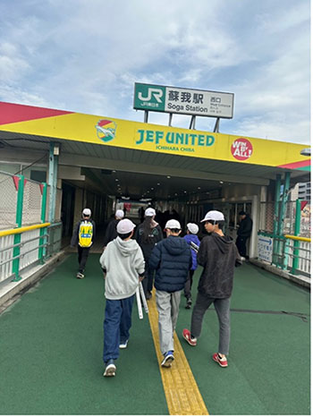 ■蘇我駅、千葉駅で6年生が考えた試合告知放送が流れます。