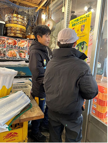 蘇我駅周辺企業、飲食店の皆さまにポスター掲出をお願いする活動の様子