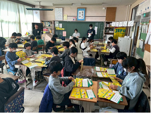 千葉市内の小学校へ告知チラシを配布するため、仕分けをしている様子
