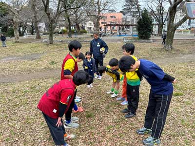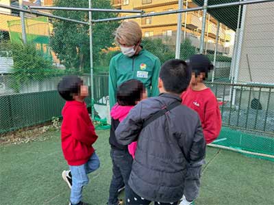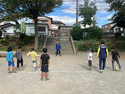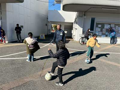 子どもたちと一緒に鬼ごっこやバスケットボールを楽しんだ後、最後はみんなでサッカーをして遊びました。