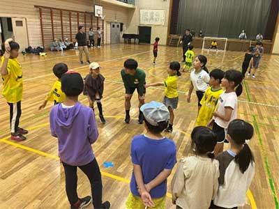 バランスゲームで身体をほぐした後は、ボールを使ったパス交換や鬼ごっこに挑戦。最後はミニゲームで笑顔あふれる盛り上がりを見せました。