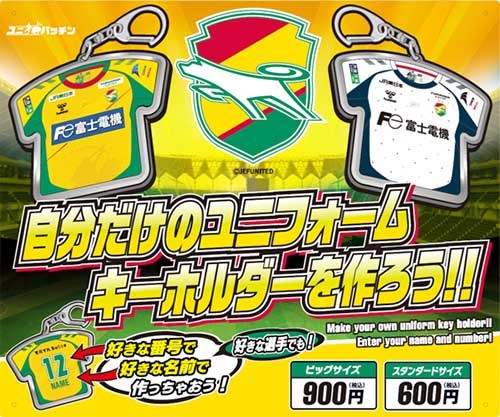 ジェフユナイテッド市原・千葉では、お客さまにお好きな番号と名前でオリジナルユニフォームキーホルダーを作っていただける、ユニフォーム型アクセサリー自動販売機「ユニパッチン」をオフィシャルショップ「12JEF」限定で設置しております。