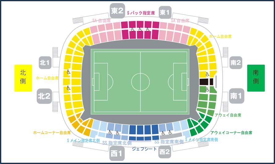 - 東京V戦、横浜FM戦についてはメイン南コーナー自由席の設定はございません。