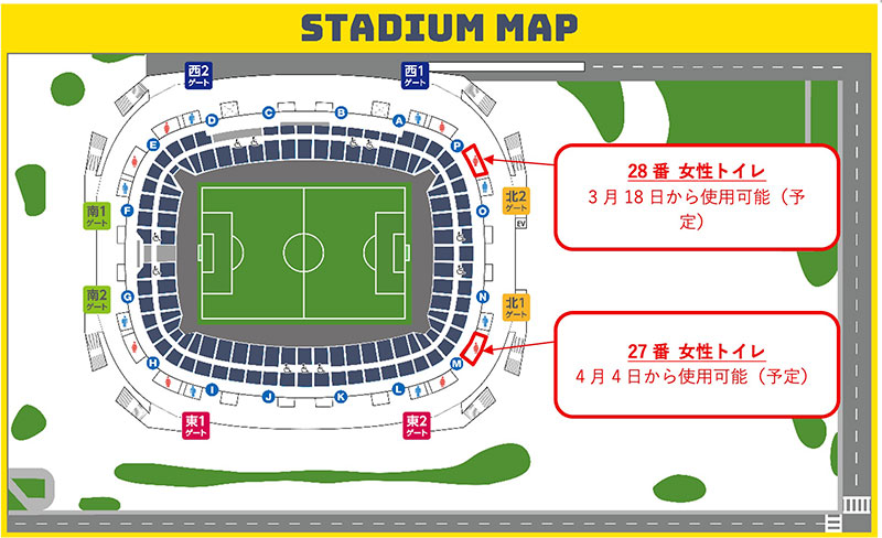 フクダ電子アリーナコンコース 28番 女性トイレ 北側・メインスタンド⇒3月18日(水)明治安田J1百年構想リーグ FC東京戦より使用可能(予定)
