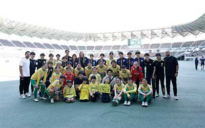 試合後、ピッチレベルで選手とともに集合写真を撮影します。