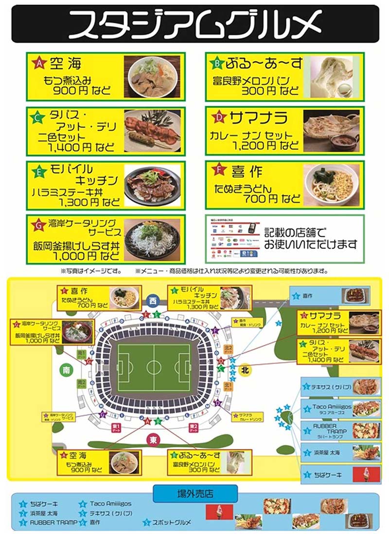 明治安田J1百年構想リーグのフクダ電子アリーナ飲食売店について、4月11日のスタジアムグルメ店舗の出店位置に一部変更がございますので、ご案内いたします。ジェフユナイテッド市原・千葉ホームゲームにおいては、ぜひフクアリグルメをお楽しみください。