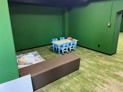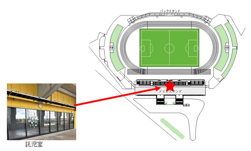 ゼットエーオリプリスタジアム コンコース内「託児室」- 託児室はコンコースにございます。ここから試合観戦はできませんのでご承知おきください。