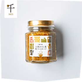 千葉市土気地区で300年以上前から生産されている伝統野菜「土気からし菜」の種を使った国産の粒マスタード。使われているはちみつも千葉市産にこだわっており、千葉市の恵みが詰まった一瓶です。