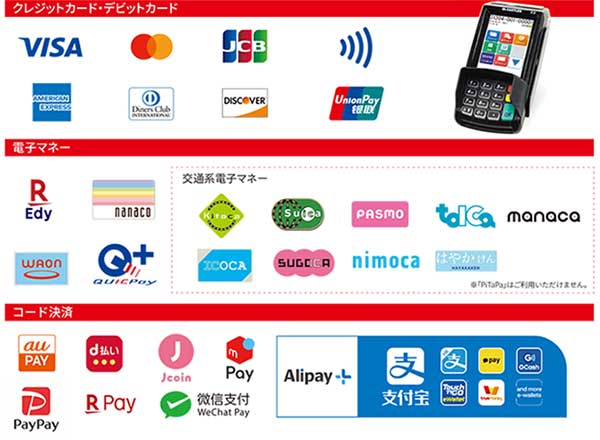 - お支払いは現金に加え、下記のキャッシュレス決済がご利用いただけます。