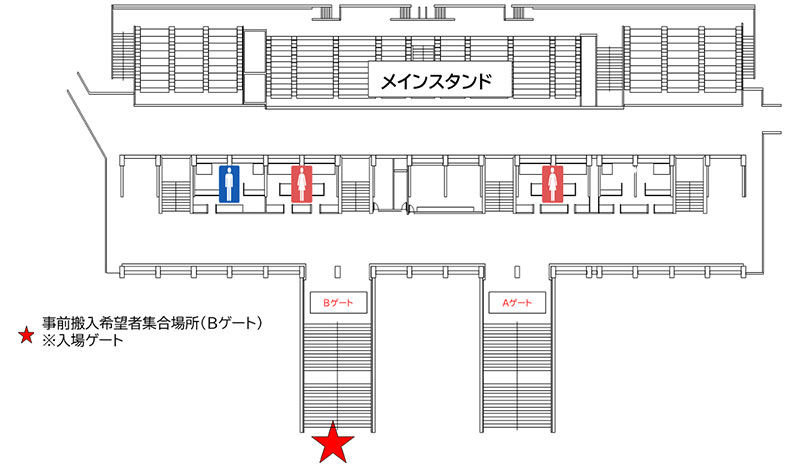 入場ゲートは『メインスタンド 正面Bゲート』の1ヵ所になります。