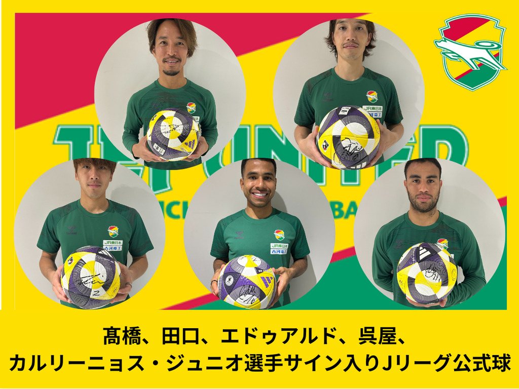 - 髙橋、田口、エドゥアルド、呉屋、カルリーニョス・ジュニオ選手の直筆サイン入りJリーグ公式球