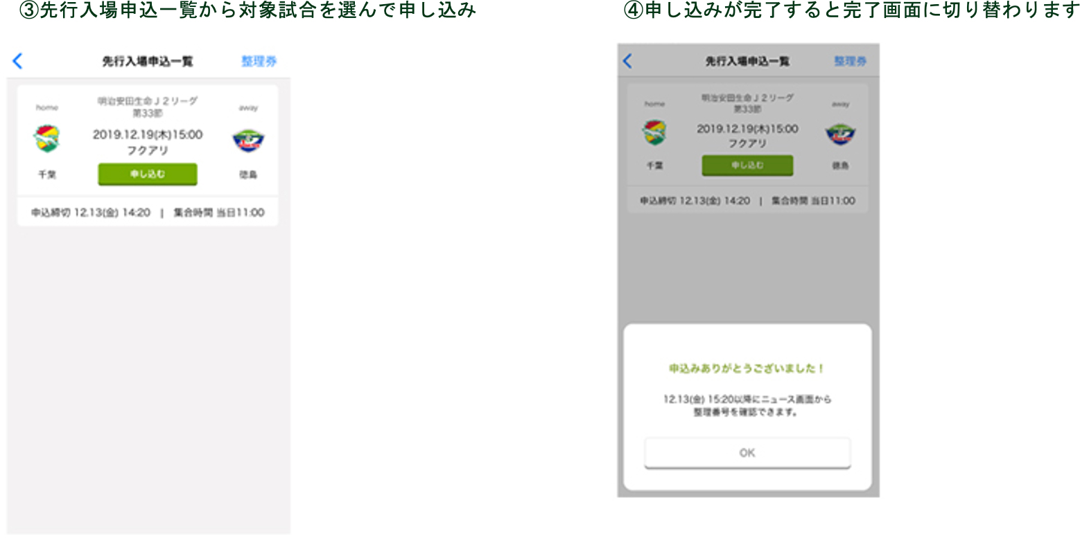 明治安田J2リーグ戦において、シーズンシート会員さまを対象に下記の手順で優先入場整理番号を取得されたお客様の列形成を実施いたします。