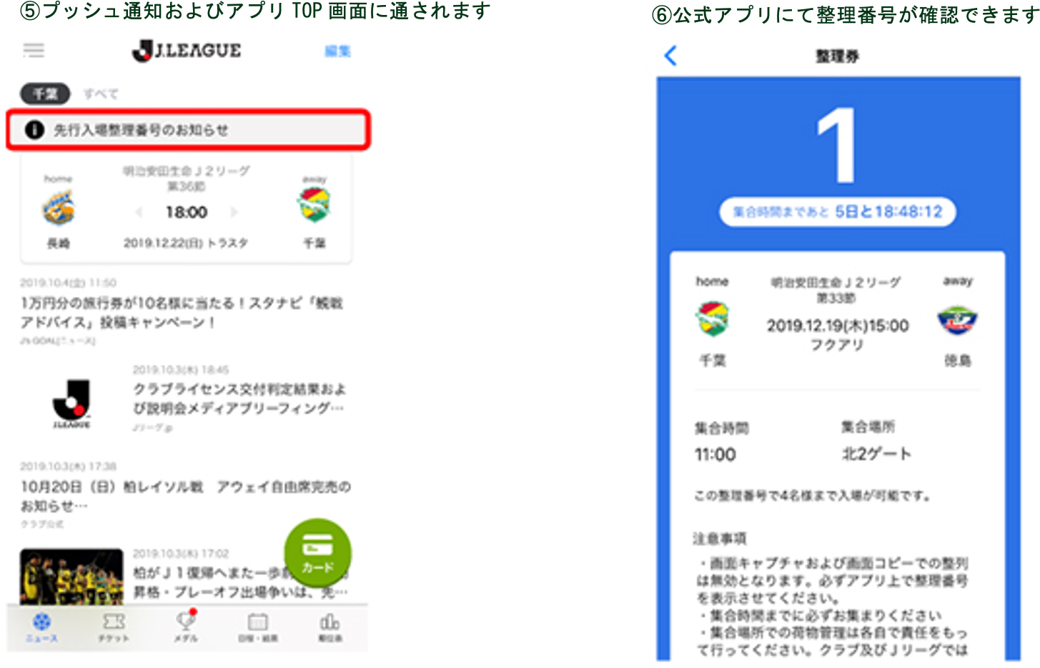 不正防止のため、画面キャプチャ・画面コピー・スクリーンショットでの提示は無効とさせていただきます。必ずJリーグ公式アプリで整理番号画面をご提示ください。